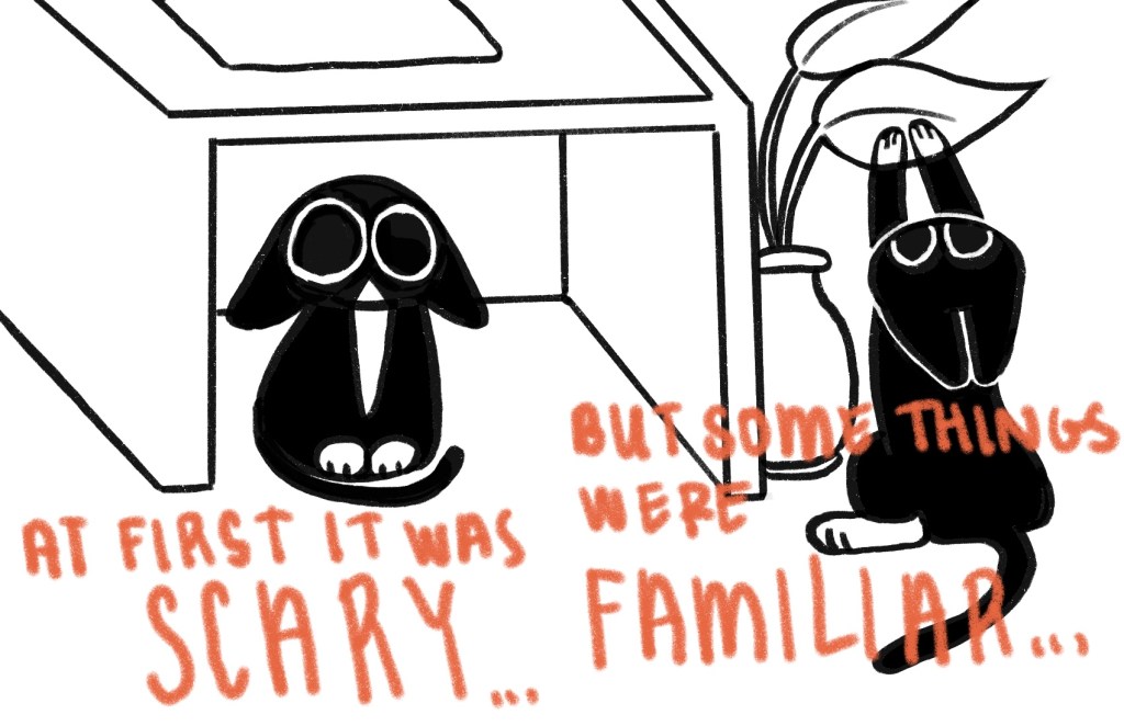 Because we were tasked to write and illustrate our own childrensbook I chose to rewrite the story of how I found my cat Bea.