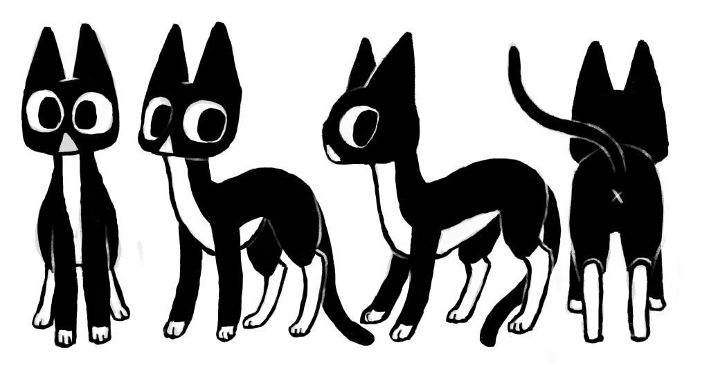 In the beginning stages we focused on character turnarounds and a basic layour for our book. Starting out with flat, black and white rough illustrations.